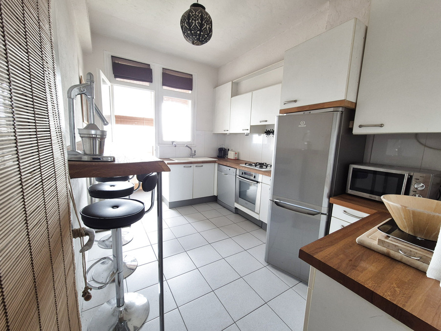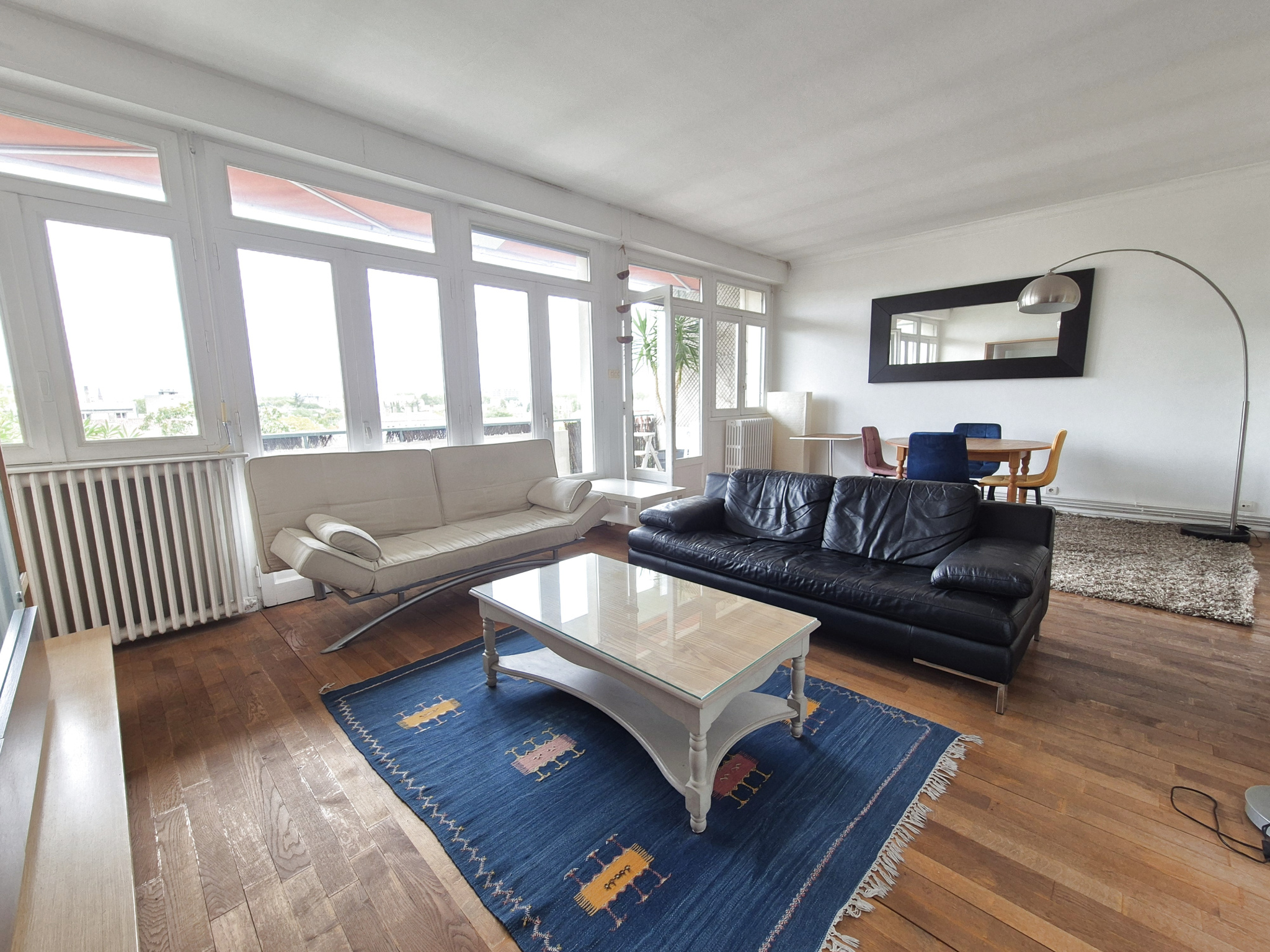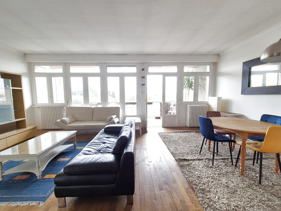 Traversant, il est lumineux et ses volumes sont généreux: beau séjour/salle à manger ouvrant sur un très grand balcon de 16 m2, une chambre, une cuisine séparée équipée, une salle de bains, un wc.