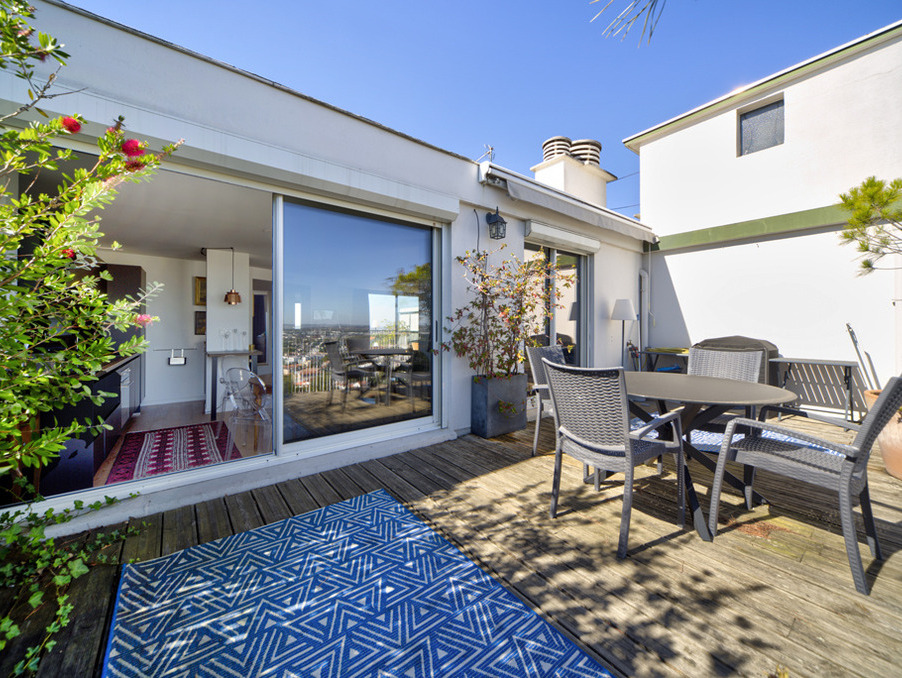 Quartier prisé /Guilhemery / Cote Pavée Appartement en Toit Terrasse doté de superbes terrasses avec vue Panoramique en dernier étage. Appt Type 2/3 d'exception - 63 m2 - entièrement rénové ! Séjour Double Traversant agrémenté de deux magnifiques Terrasses sur 40m2 idéalement orientées sans vis à vis au calme. Pompe à chaleur, Climatisation, cave à vin et garage. Prestations de haute qualité. Appt clé en main pour un Coup de coeur assuré ! Bien unique sur le marché. Charges annuelles 1042EUR sans procédure de copropriété Honoraires charge vendeur inclus dans le prix. Contact : 06 64 95 70 77