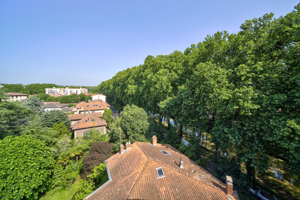 Niché entre le Canal de Brienne et la Garonne, T3 traversant de 50,56 m2 situé au 7ème et dernier étage d'une résidence sécurisée avec combles aménageables de 20,84 m2 afin d'en faire un duplex.