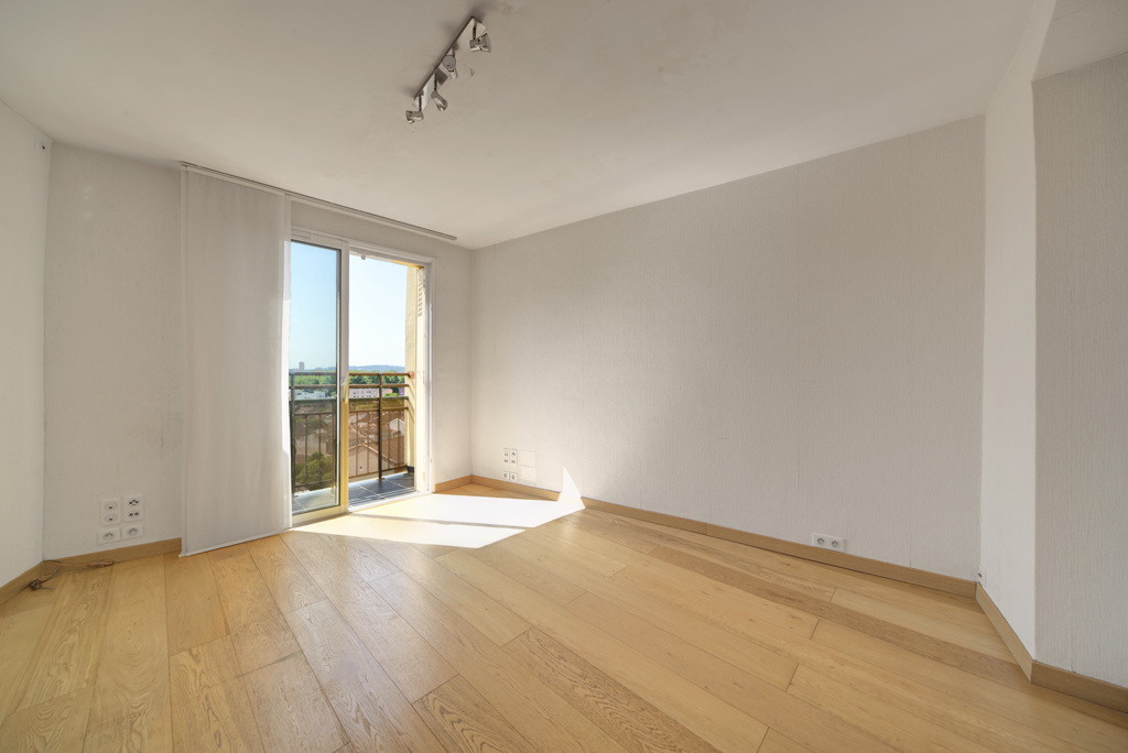 - un séjour lumineux donnant sur un balcon avec une vue dégagée