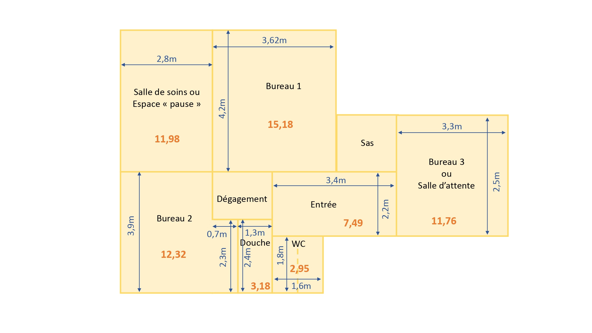 Les 20m2 partagés comprennent l'entrée + une salle d'attente.