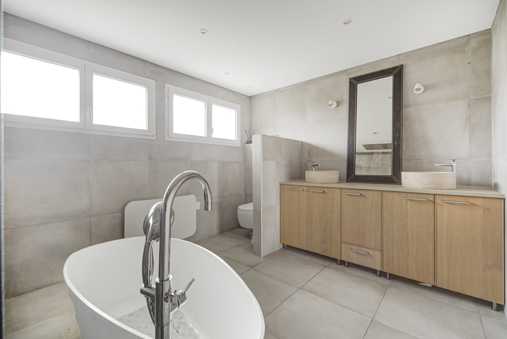 A l'étage, vous trouverez 4 chambres dont une suite parentale avec balcon, dressing et salle d'eau ainsi qu'une salle de bains avec baignoire, grande douche à l'italienne avec ciel de pluie, spot bluetooth, double vasques.
