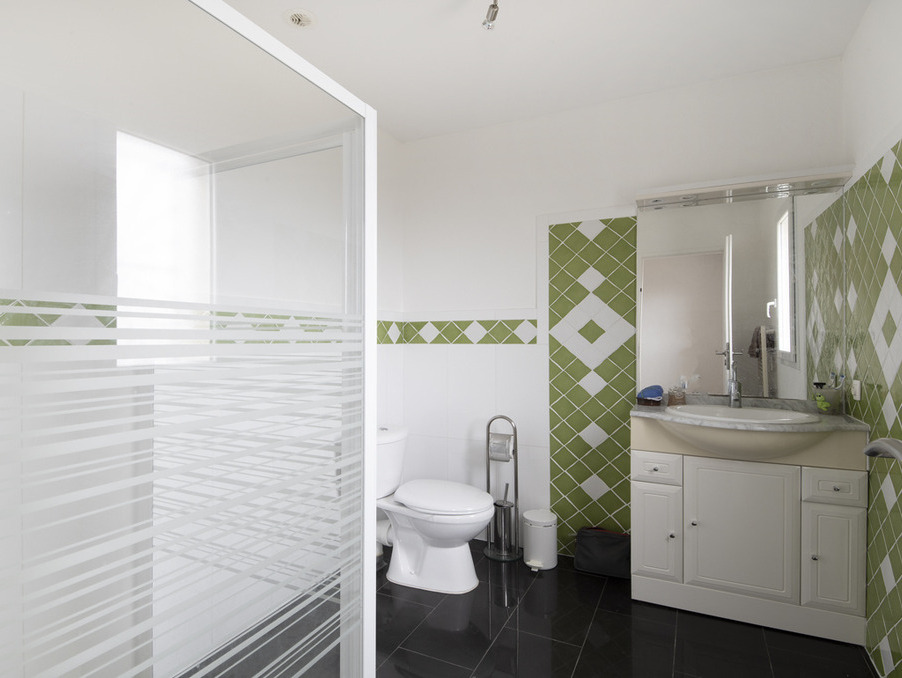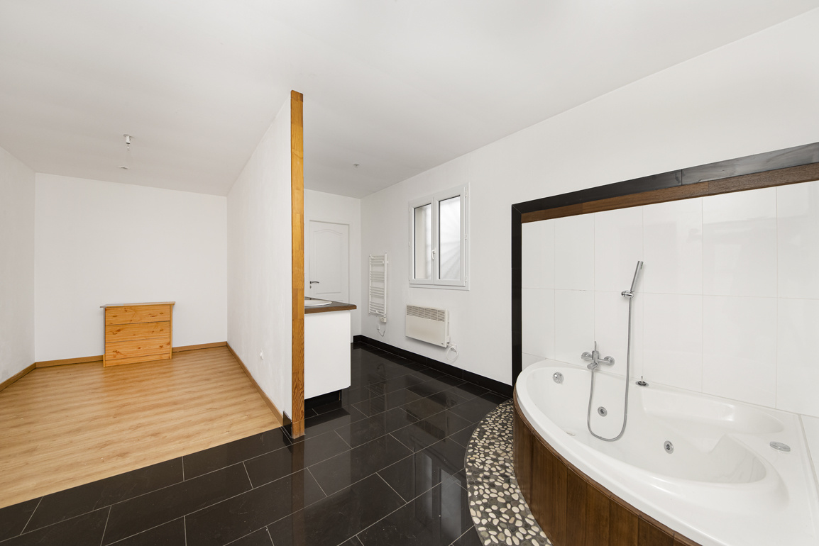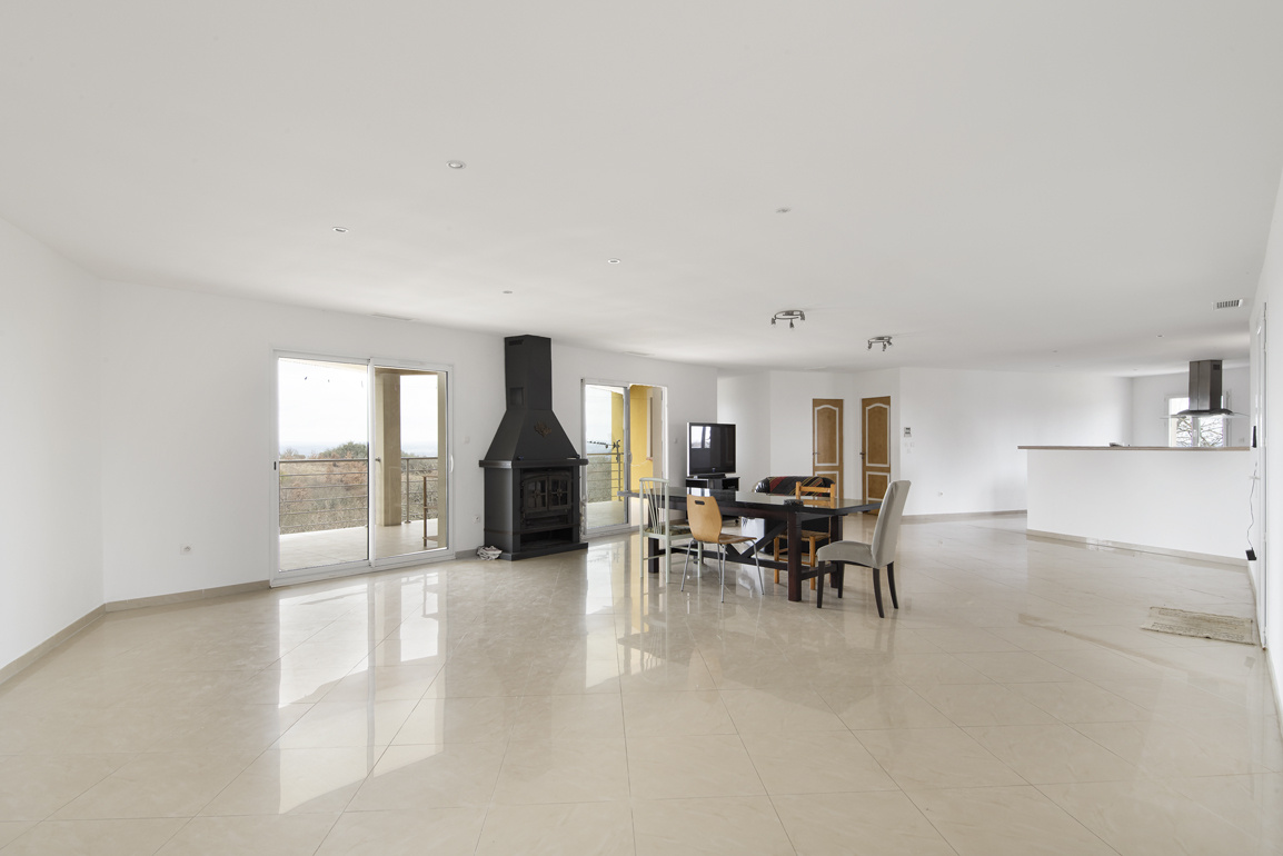 Elle se compose d'un grand séjour avec une cheminée de 68 m2 donnant sur une terrasse de 34 m2 exposée Ouest, d'une cuisine équipée ouverte sur le salon, de trois chambres dont une chambre parentale avec salle de bain/salle d'eau ainsi qu'un dressing, et une deuxième chambre avec une salle d'eau.