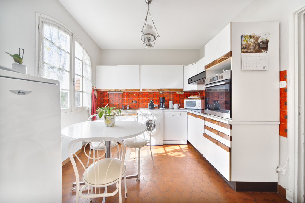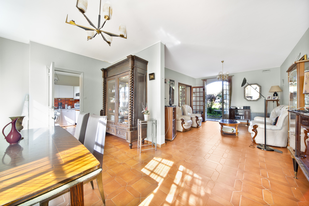 Maison à deux pas des commerces sans vis à vis 135m2 sur parcelle 650m2 bien entretenue avec jardin et garages (3). Chauffage électrique.