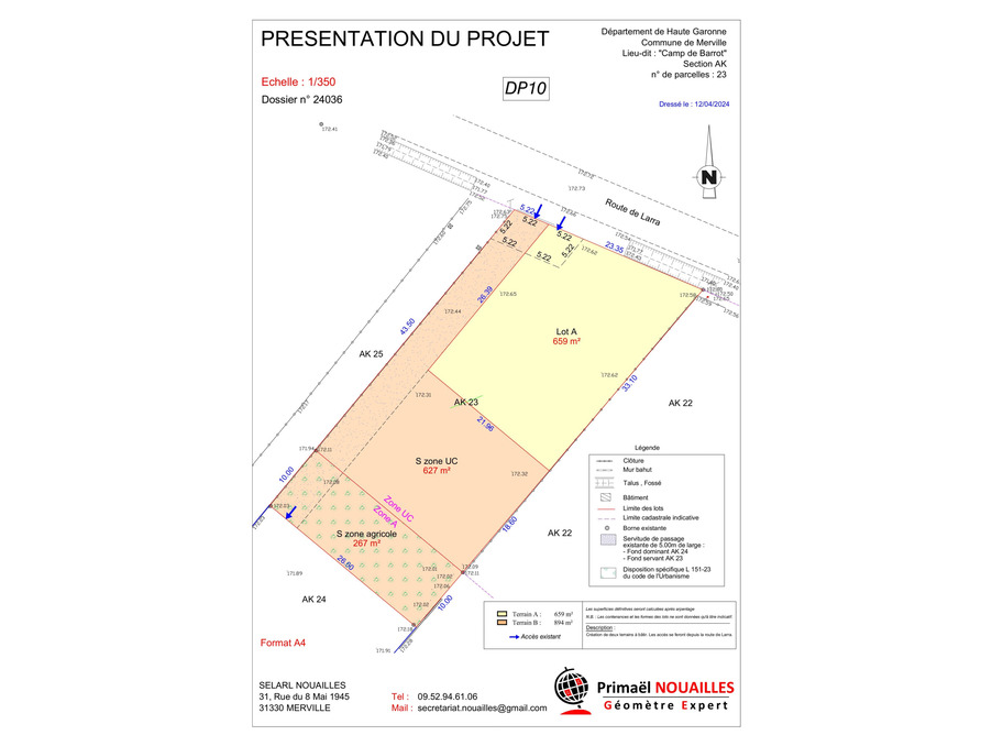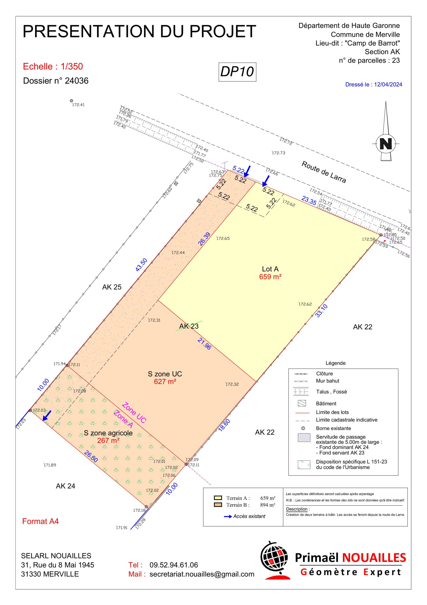 Parcelle 894m2 et 630m2 hors chemin d'accès.