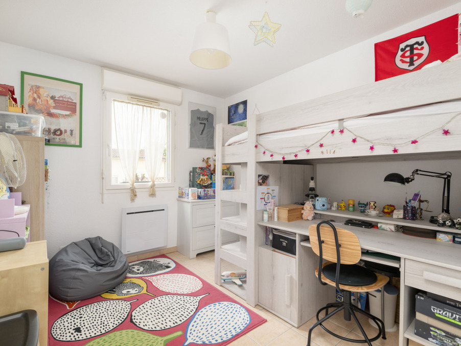 Trois chambres dont une avec balcon, une salle de bain, un deuxième wc.