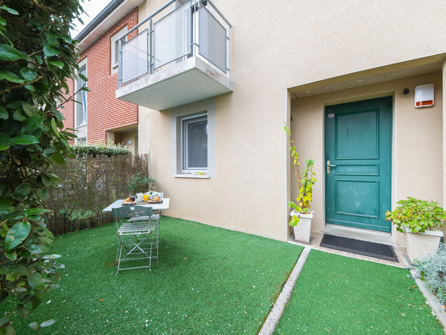A l'extérieur une jolie terrasse + petit jardin bien exposé, un garage de 14m2.
