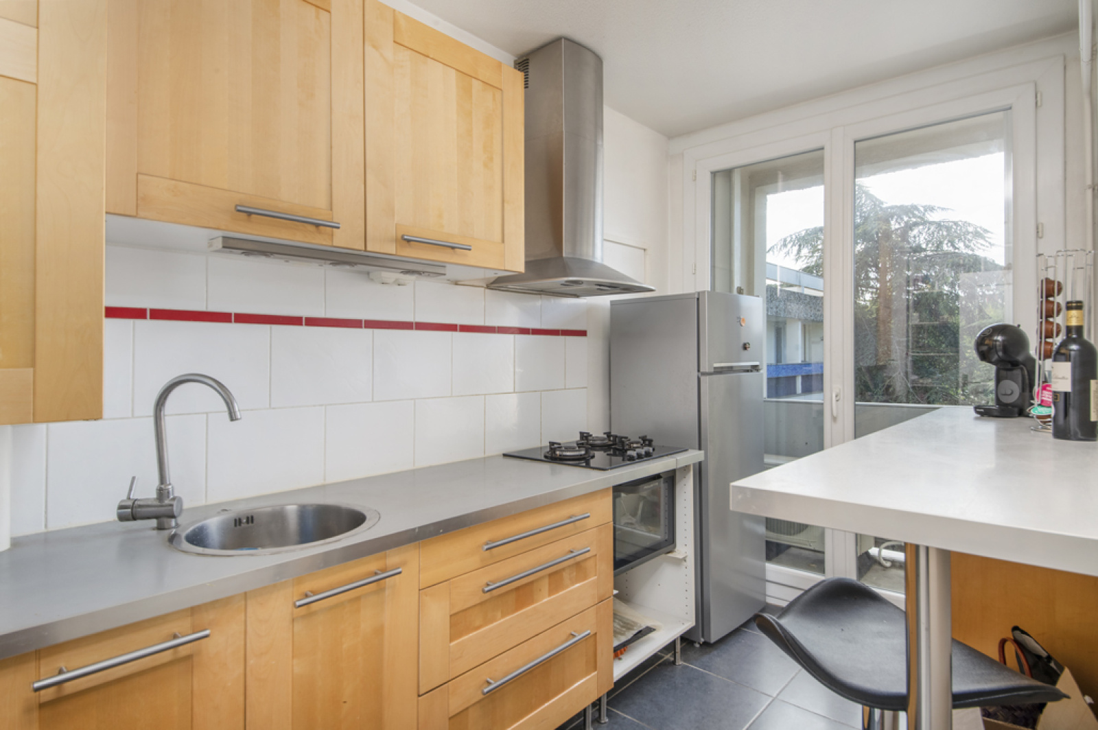 Composé d'un séjour exposé plein ouest - très lumineux- , d'une cuisine aménagée, d'une chambre séparée, salle d'eau et wc.