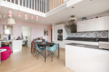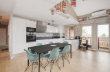 Il se compose d'un salon avec cuisine américaine contemporaine entièrement équipée, de deux chambres - dont une avec dressing- d'une salle d'eau et à l'étage - en mezzanine- une chambre supplémentaire pouvant aussi faire office d' espace salon, salle de jeux....