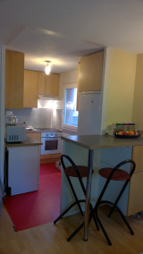 Il se compose d'une entrée, d'une cuisine équipée ouverte sur le séjour, d'une chambre, d'une salle de bains et de WC séparés.