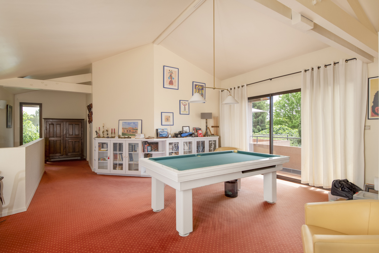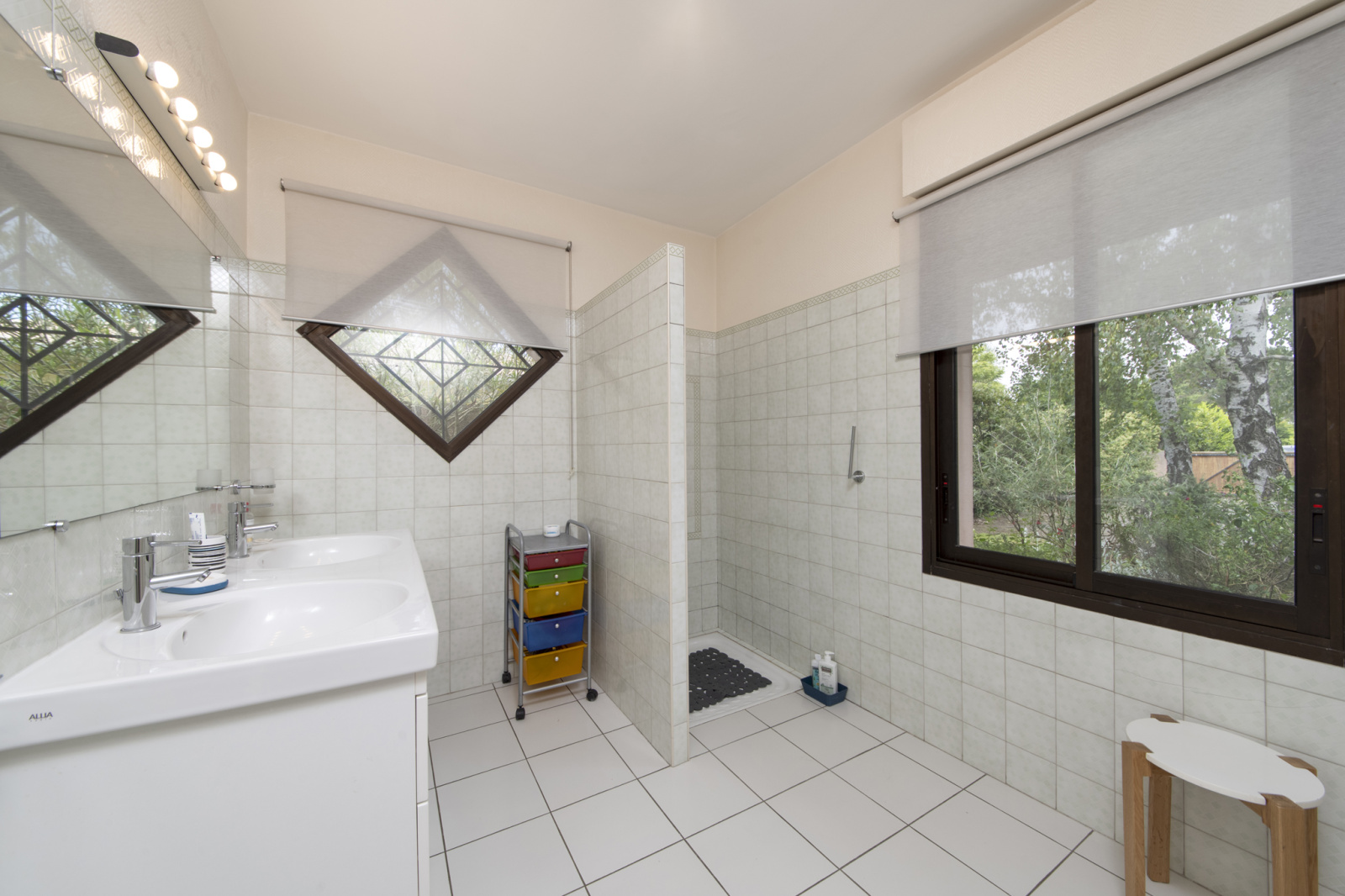 La maison dispose d'un beau séjour de 65 m², d'une cuisine-salle à manger de 30 m², le tout ouvrant sur le jardin et la terrasse. Vous disposerez de 5 chambres, d'une grande salle de jeux/Bureau de 40m², de 3 salles d'eau/salle de bains et de 3 wc ainsi que d'un cellier et d'une buanderie.