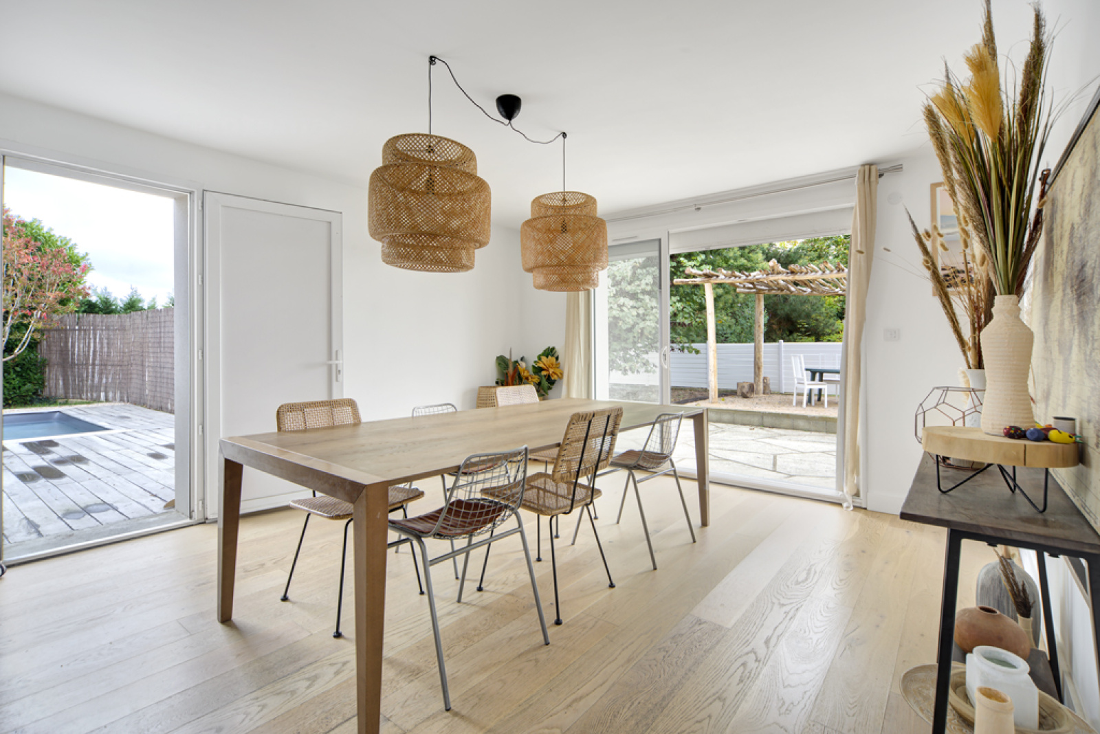 La piscine (8x4m) et ses plages sont prolongées par une superbe terrasse en bois.