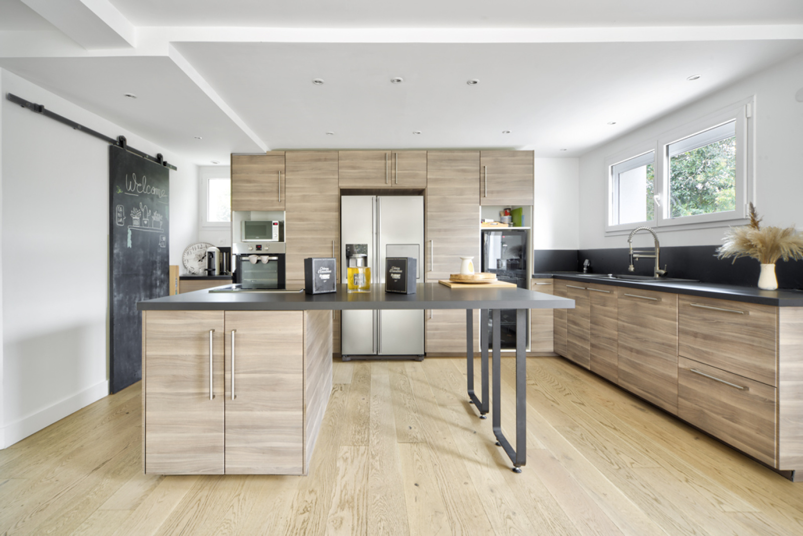 A l'étage, vous trouverez 4 chambres dont une suite parentale avec balcon, dressing et salle d'eau ainsi qu'une salle de bains avec baignoire, grande douche à l'italienne avec ciel de pluie, spot bluetooth, double vasques.