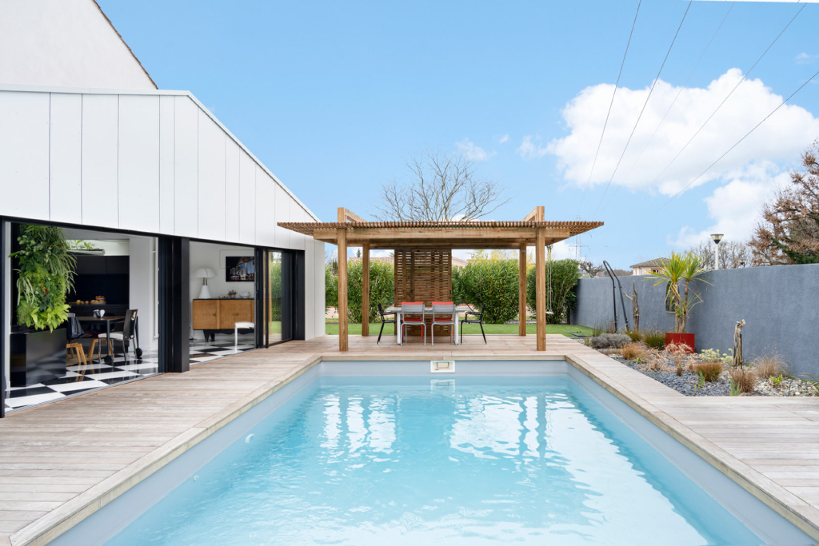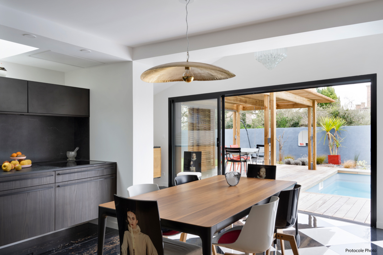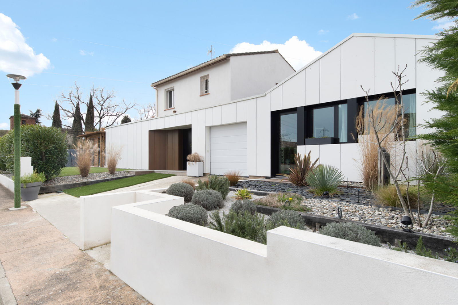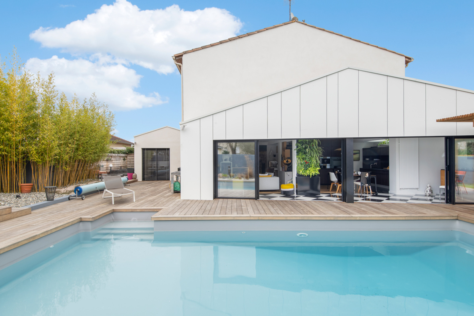 Maison contemporaine de charme,construite en 2000, agrandie et rénovée en 2019 par architecte designer. Elle propose des prestations high tech en terme de construction, d'équipement, de décoration, ainsi que d'aménagement. Cette villa d'exception se situe à Balma, à 5 min du centre ville. Elle est implantée sur une parcelle de 700 m2 au fond d'une impasse avec une très belle vue sur un espace paysager avec piscine et terrasses bois. Elle est située dans un environnement très calme et résidentiel de qualité. Pas de vis à vis. Elle offre une surf. totale hab de 220 m2 avec 1 plain pied de 155 m2 + 1 étage de 65 m2 + garage isolé de 25m2 avec mezzanine et buanderie.