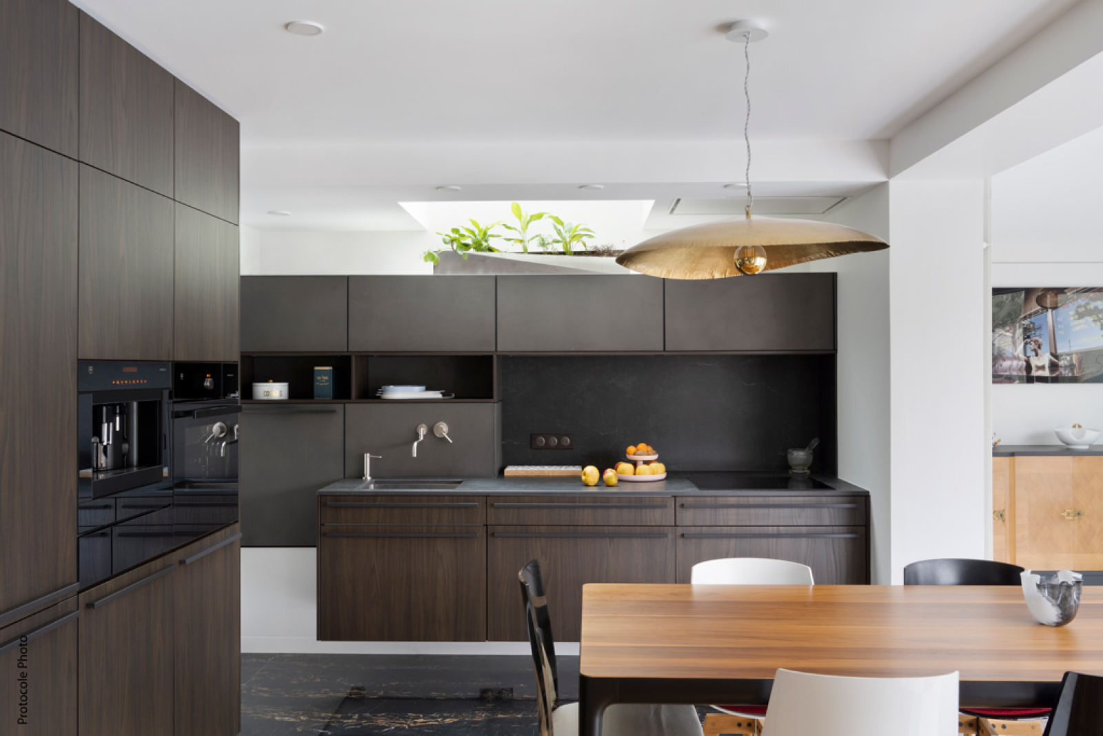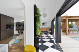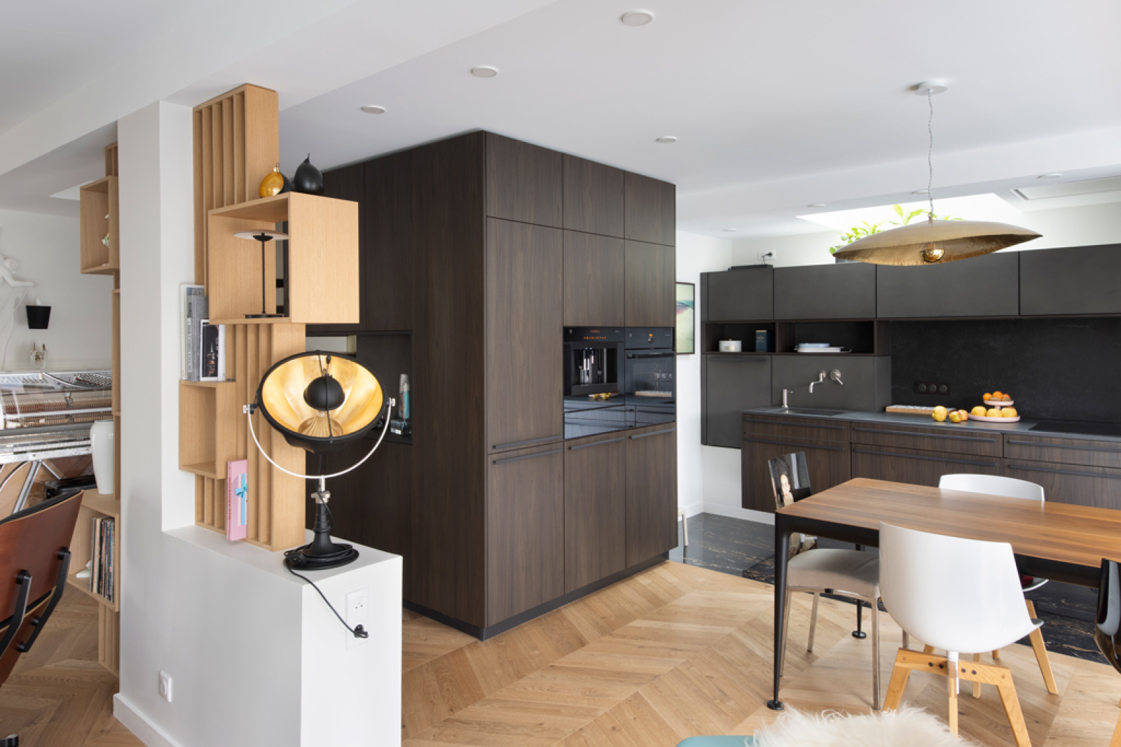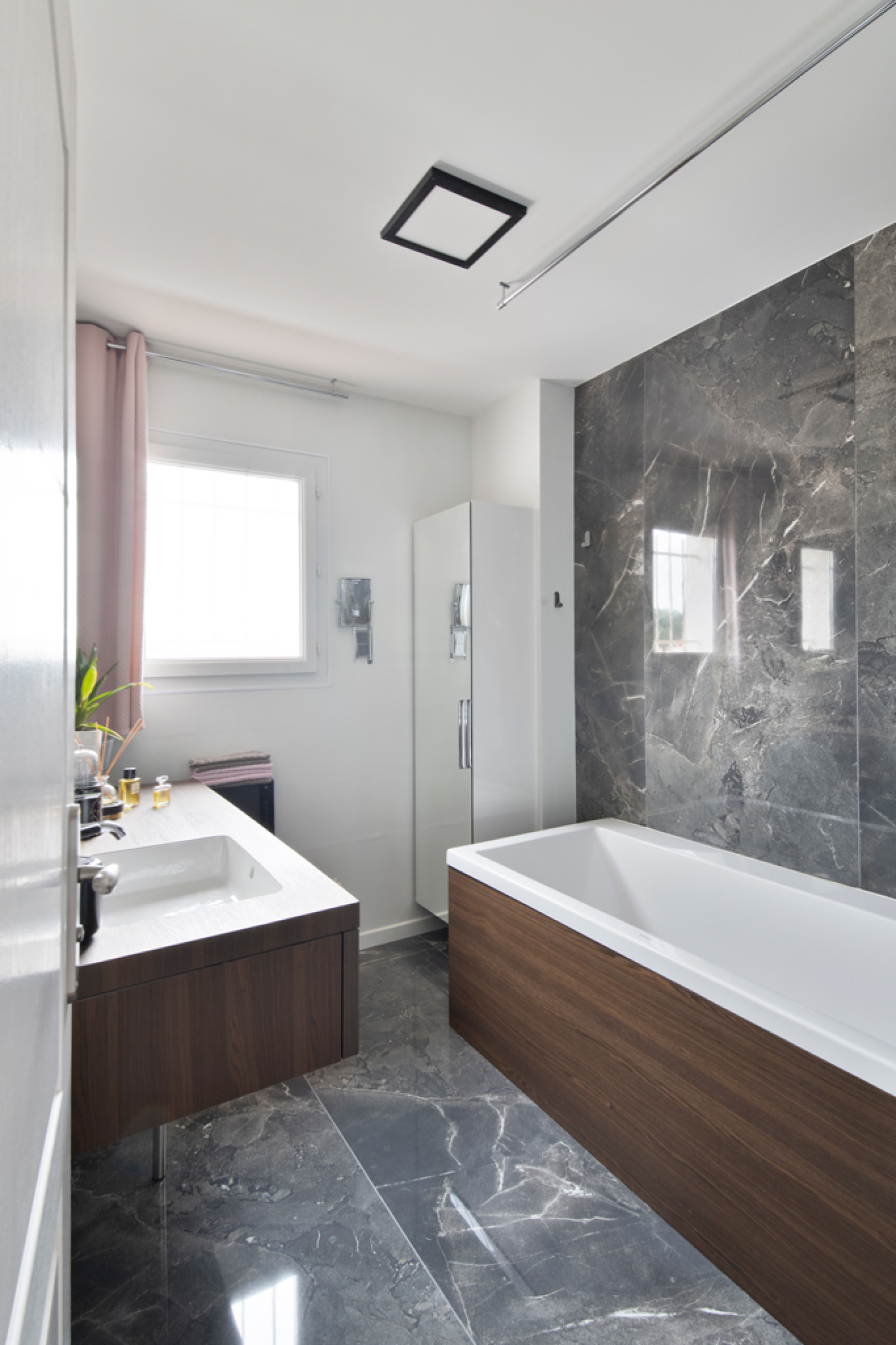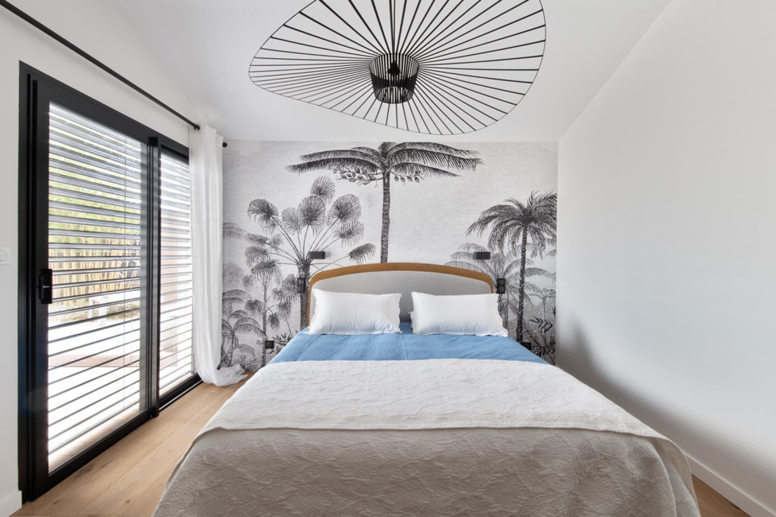 La villa se compose en RDC d'une entrée avec dressing et WC japonais, un salon/séjour de 80 m2 avec cuisine aménagée sur mesure de marque LEICHT haut de gamme, entièrement équipée avec des appareils électoménagers de marque : four multifonction à vapeur et cafetière intégrée V-ZUG, frigidaire congélateur LIEBHERR, lave-vaisselle MIELE, plaque induction et hotte NOVY + une suite parentale de 35 m2 offre l'accès direct aux terrasses, un dressing aménagé, une magnifique SDE avec douche italienne + une pièce magnifique de 35 m5 communicante, servant actuellement de local professionel avec coin laverie-cuisine et WC avec son entrée indépendante et son jardinet privé + un garage de 25 m2 avec mezzanine et buanderie. Les parquets sont en bois chêne massif italien LISTONE GIORDANO, ainsi que l'escalier design montant à l'étage.