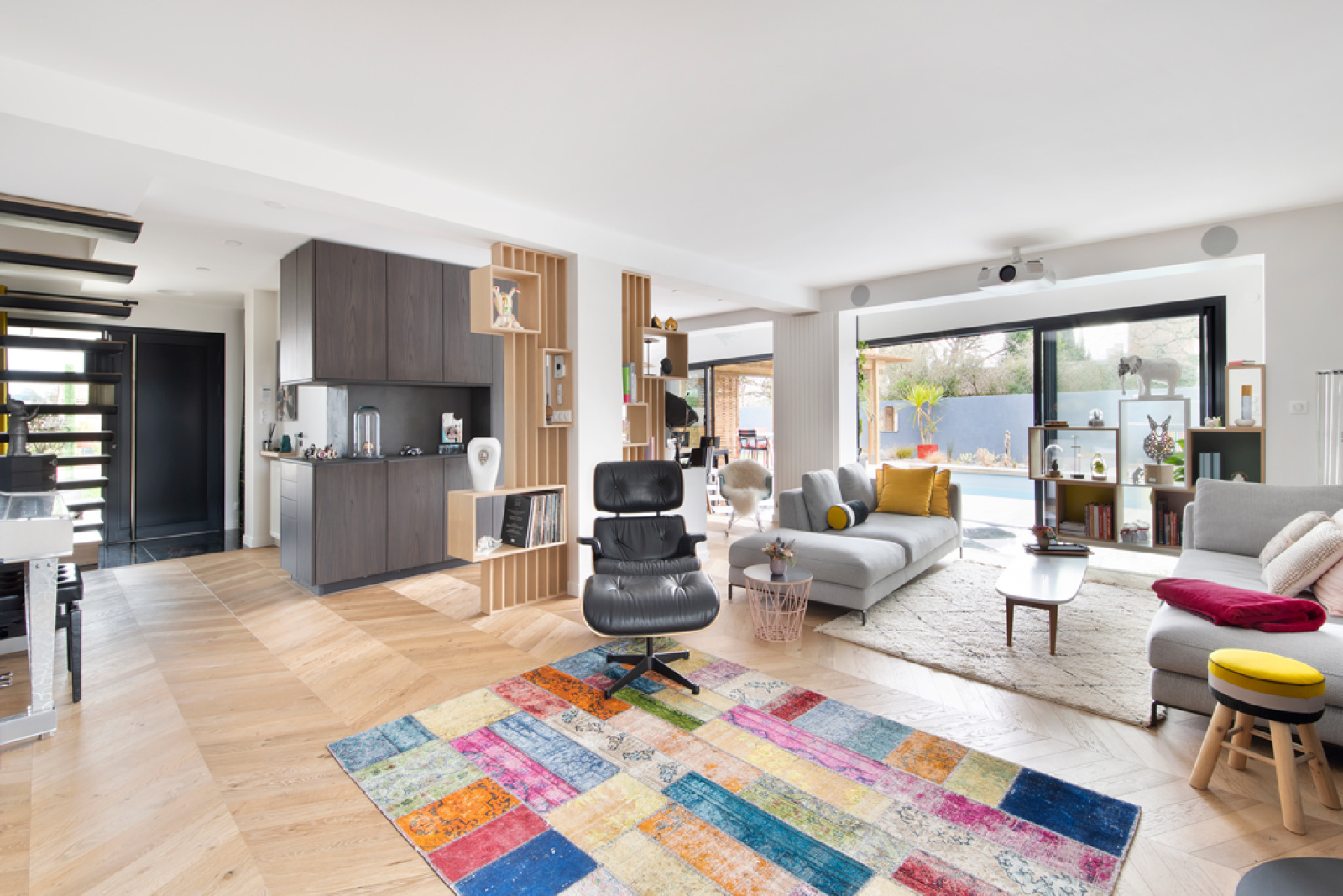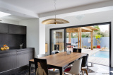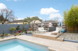 Le séjour, ouvert par de larges baies vitrées sur une longueur totale de 9 m, plein sud, équipées de rideaux bio-climatiques électriques extérieurs, offre une vue très intime sur la piscine et les très belles terrasses extérieures ainsi que sa pergola bois avec panneaux coulissants bois + rideaux. Les espaces extérieurs sont divisés en zones de repas, de détente, d'activité de jardinage ou jeux pour enfants. Les plantations extérieures sont équipées de l'arrosage intégré. Toutes les ouvertures du RDC sont anti-effraction et la sécurité est assurée de surcroit par une alarme avec détecteurs de portes + présence. La piscine 9,5 x 4,5 avec marches et fond progressif est au sel. La consommation elec + gaz est de 180 €/mois avec équipement pour voiture électrique. Chauffage central gaz + poële bois + climatisation réversible. L'impôt foncier s'élève à 1 900 € annuel. Cette villa aux finitions prestigieuses mérite une visite rapide. Contact Elisabeth Brun 06 81 36 72 40.