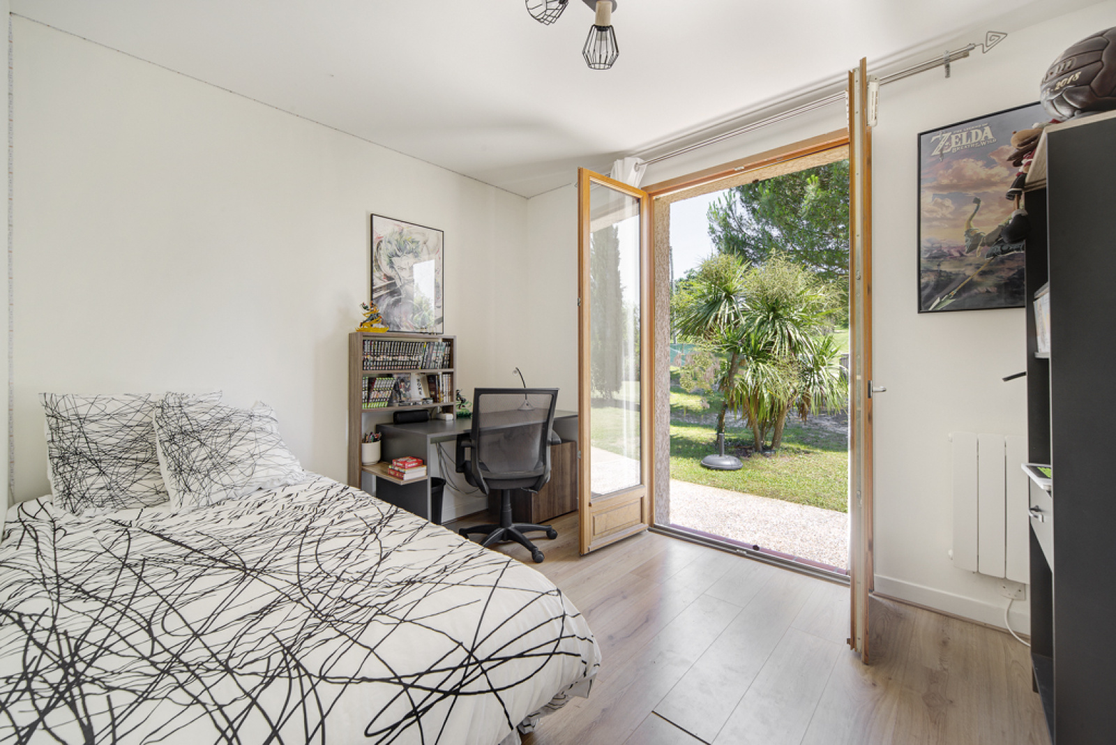 Vous disposerez de 4 chambres de plain pied dont suite parentale. A l'étage,une dernière chambre /bureau vous permettra de vous isoler ou de travailler sereinement;