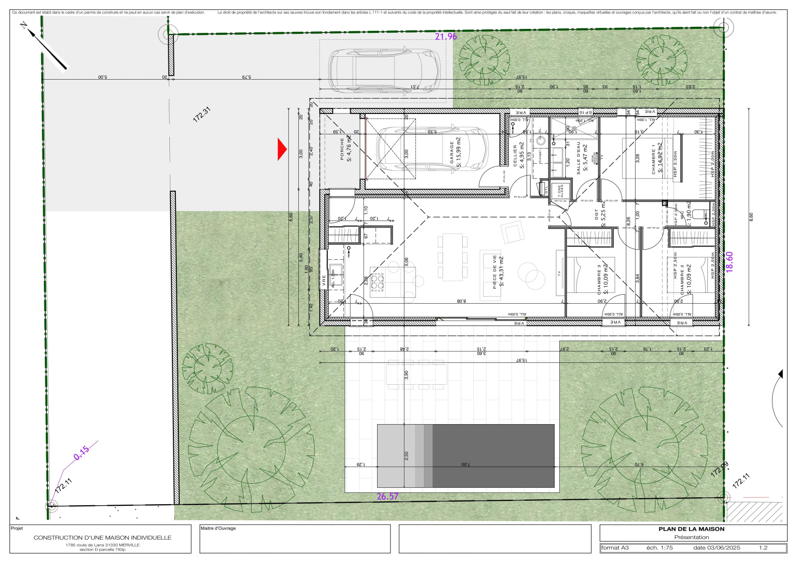Secteur calme à 2km du centre de Merville. Il est possible de retirer la piscine du projet.