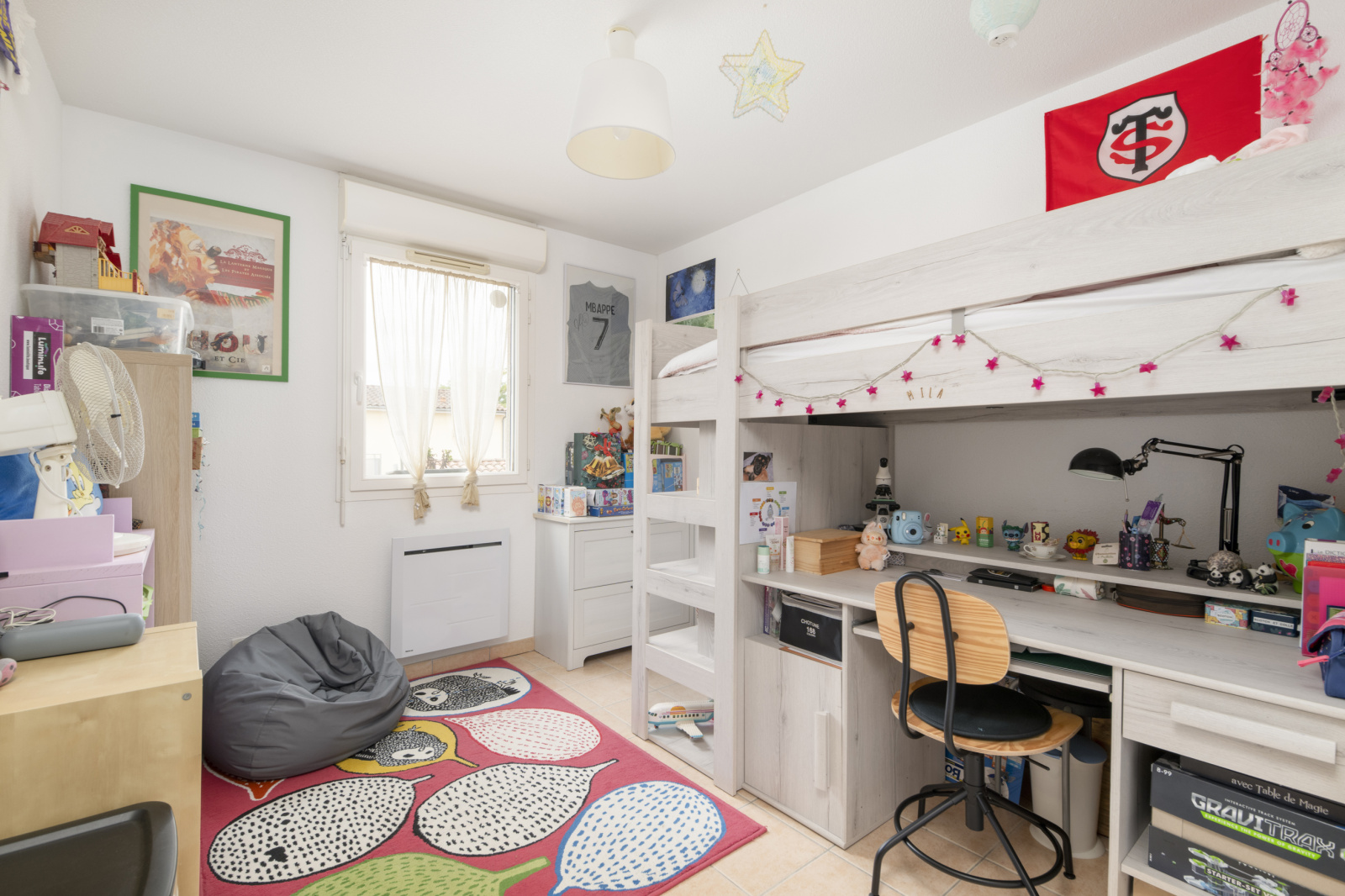 Trois chambres dont une avec balcon, une salle de bain, un deuxième wc.