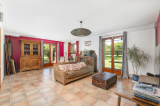 La partie jour se compose d'une entrée avec vestiaire, d'une pièce de vie confortable, d'une cuisine semi-ouverte avec un beau piano de cuisson et d'un cellier/buanderie attenant. Cet ensemble ouvre sur les terrasses et le jardin au calme.