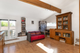 L'étage vous offre une chaleureuse mezzanine de 22m² avec une belle hauteur sous-plafond offrant diverses possibilités (second salon, salle de jeux, salle de travail, salle de musique...), 2 vastes chambres supplémentaires avec placards (16m² et 14,8m²) et poutres apparentes pour encore plus de charme, un dressing et une salle d'eau avec WC.