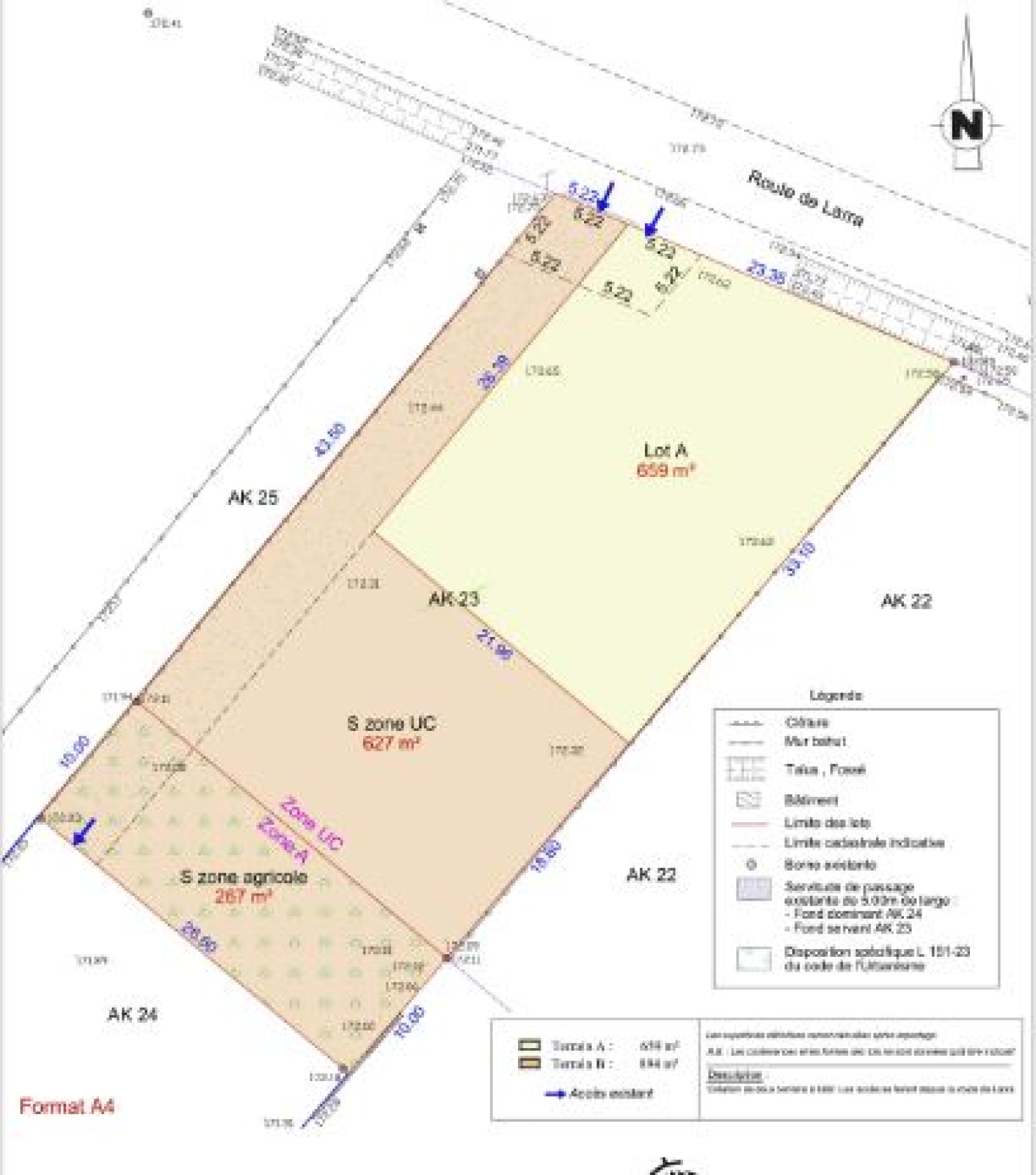 Le lot A indiqué sur le plan est déjà vendu. La maison voisine est construite.