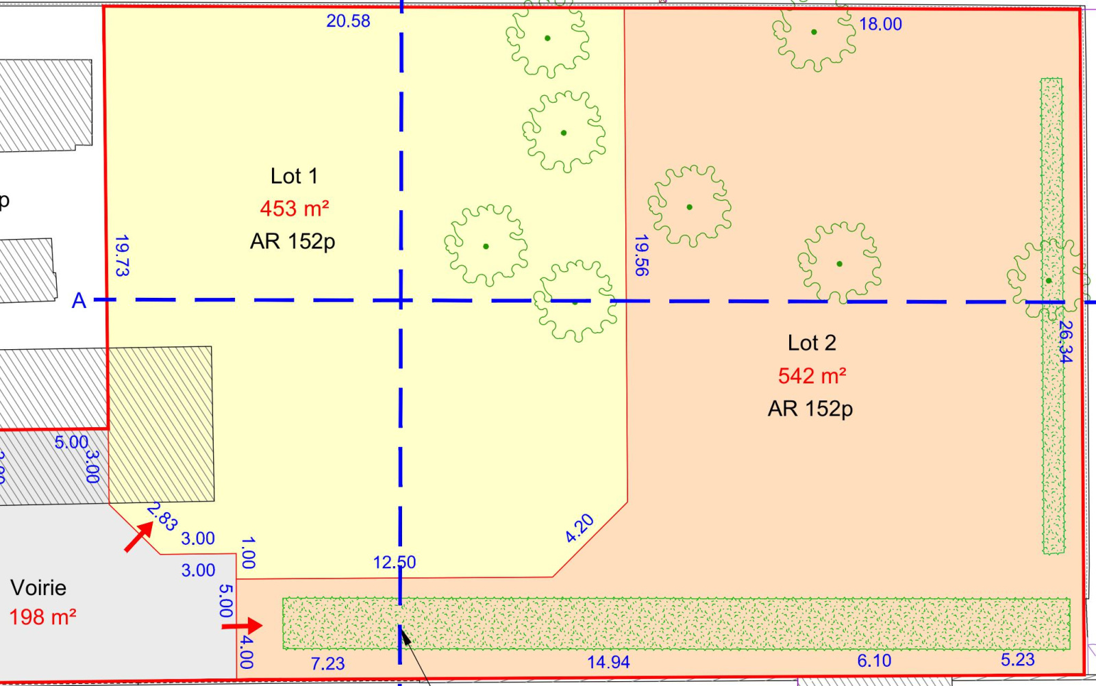 Parcelle viabilisée 542m² (Lot numéro 2).